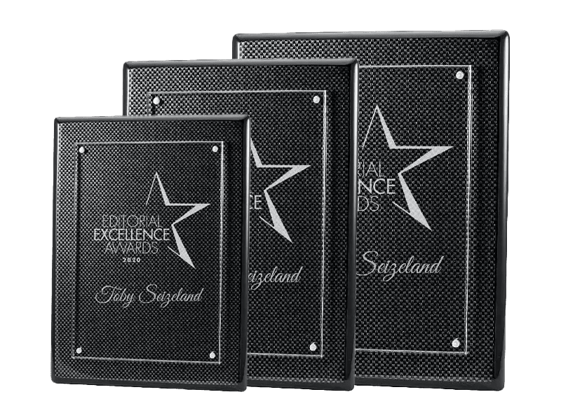 Make a lasting impression with Acrynoir Carbon Fiber Plaque. Featuring a magnetic acrylic sheet for easy branding, its black decal gloss vinyl finish adds a sleek touch. Available in three sizes, ideal for corporate gifts, awards, and employee recognition.