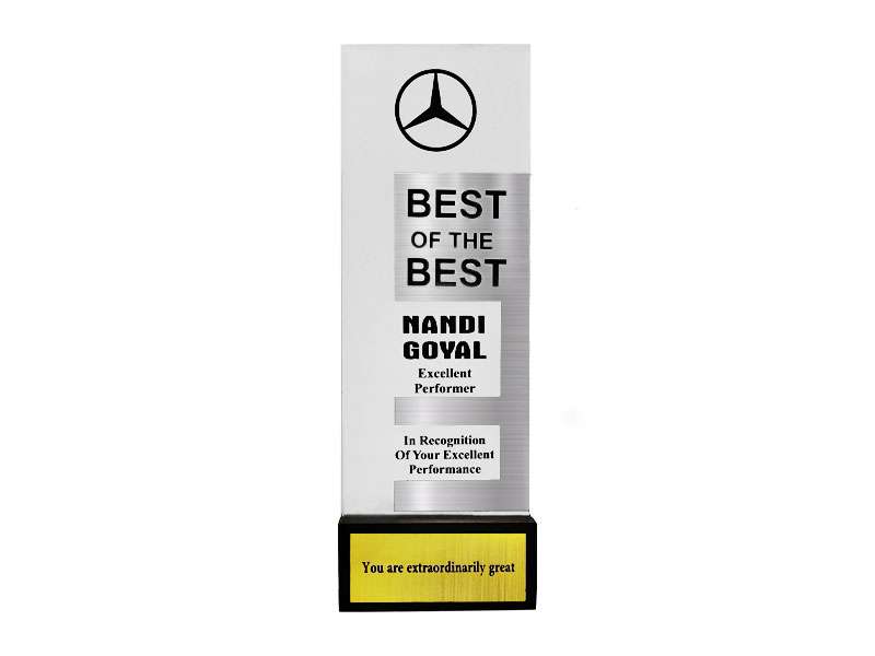 Celebrate success with Amichan, an elegant trophy crafted from frosted acrylic complemented by a striking gold plate on a sleek black base. With ample branding space, this customizable trophy is ideal for school awards, sports events, and employee recognition. As a leading trophies wholesaler in the UAE, we offer premium corporate gift items to enhance your special events.