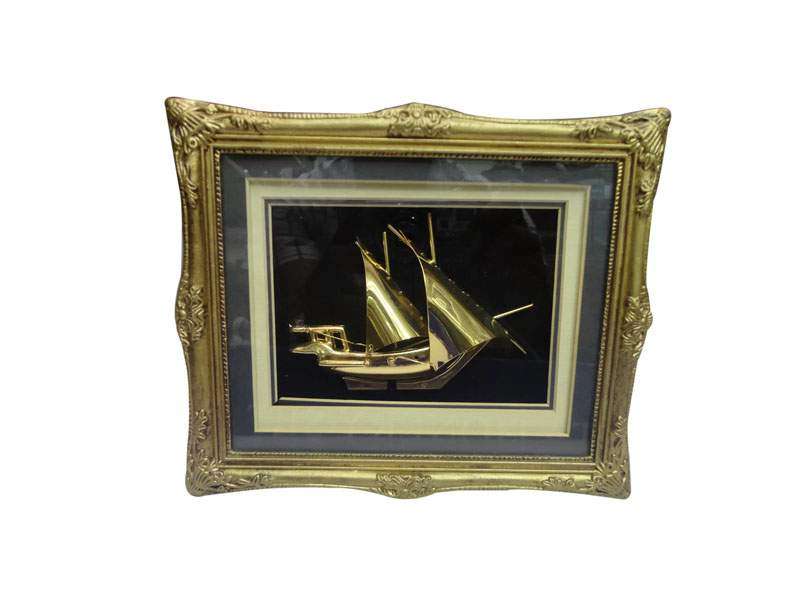 Classic looking metal 3D Arabic boat/dhow in an antique look photo frame , size