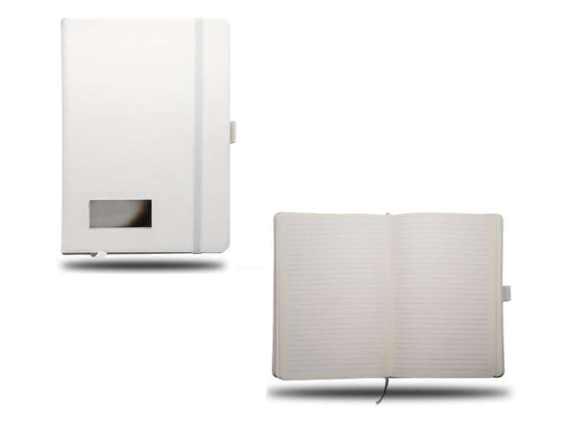 A matte finish white notebook. Always there when you need it, this purse or briefcase pal lives to hold meeting notes or keep a lid on secret plans.