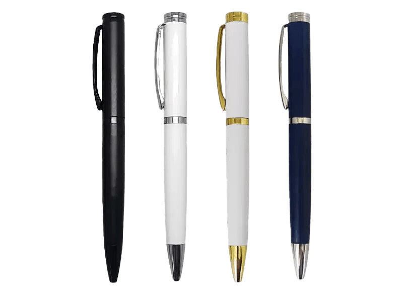 Experience the perfect blend of style and functionality with Grabb, our twist-action ballpoint pen. Crafted from durable steel, it combines a sleek design with a smooth twist-action mechanism. Available in White with silver or gold trimmings, Blue with silver, and classic Black. Elevate your writing experience with Grabb, a statement of sophistication.
