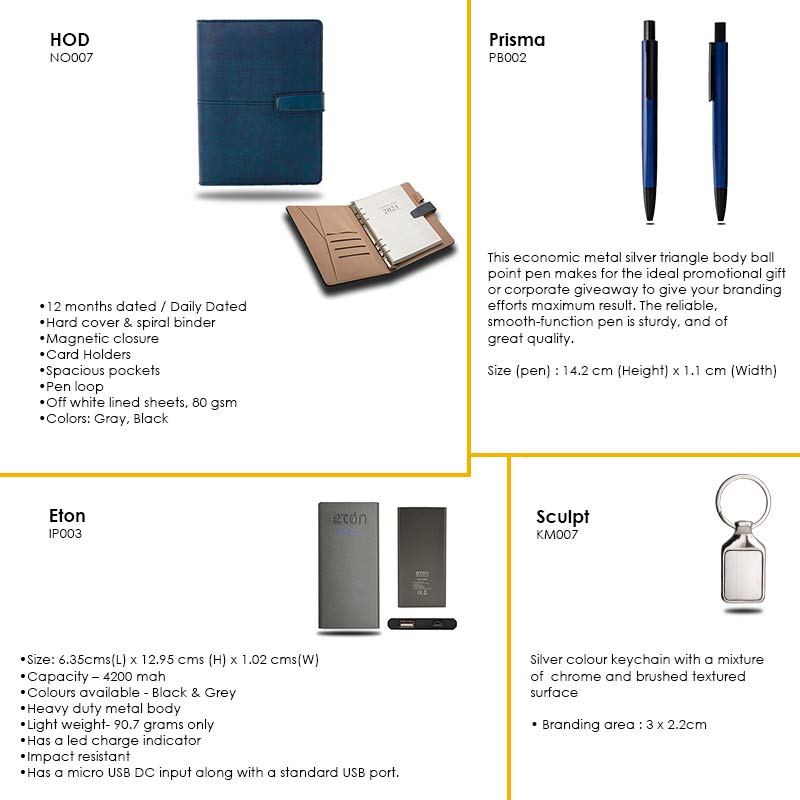 Rule 1 of promotional gifting- make it count. This 4-piece giftset definitely does that, with its classy, elegant, and resourceful pieces, that are sure to be used everyday and maximize branding. Consisting of: