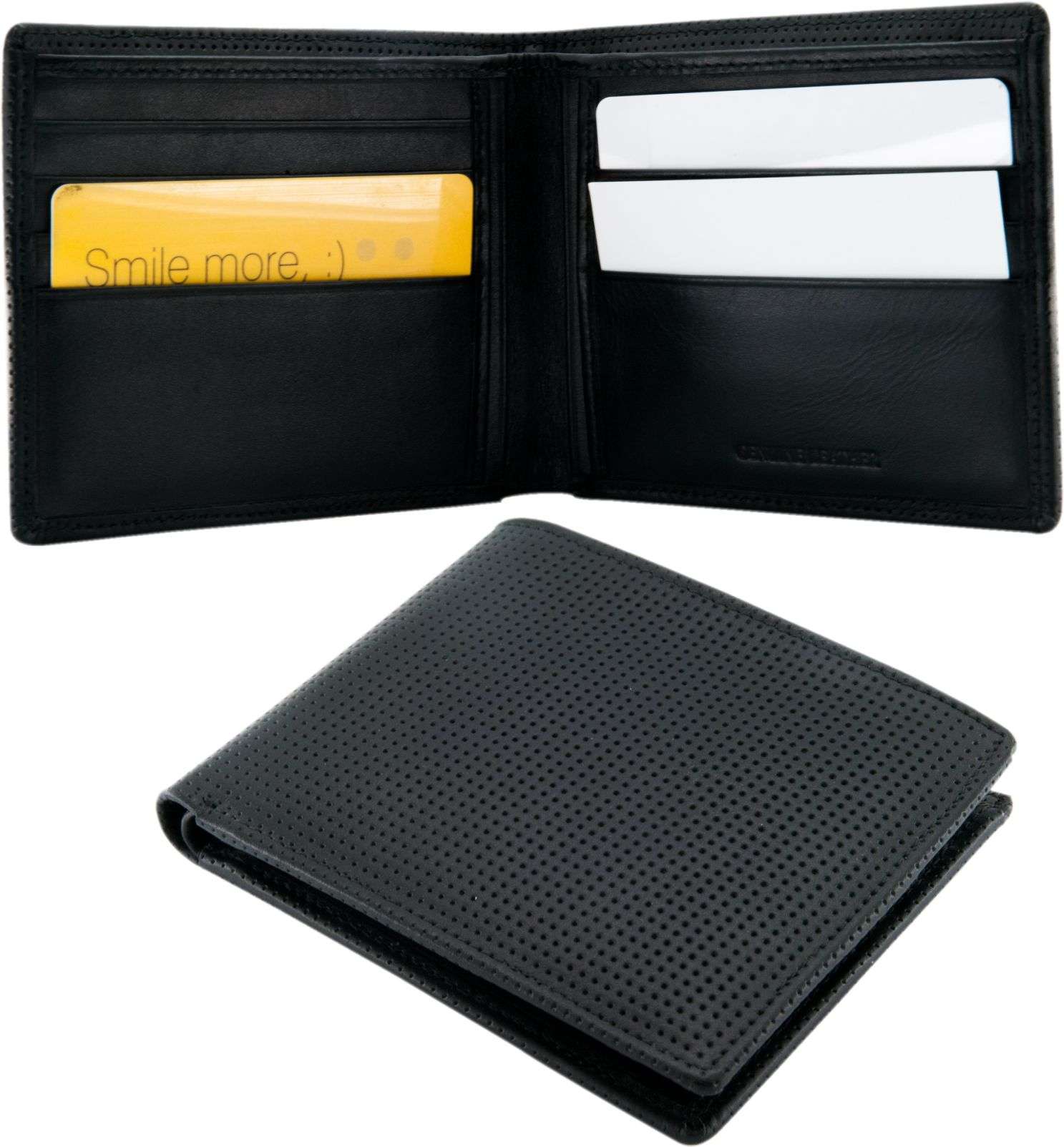 Handcrafted from genuine Italian leather, this eight slot wallet has a punched leather look