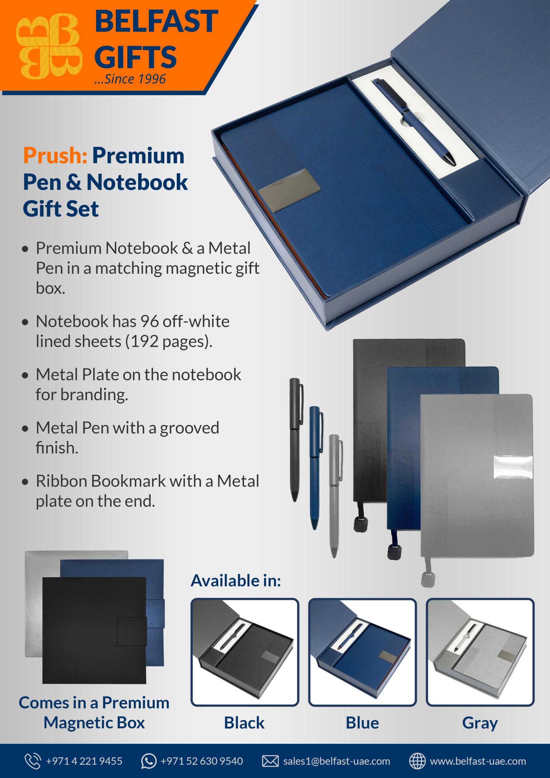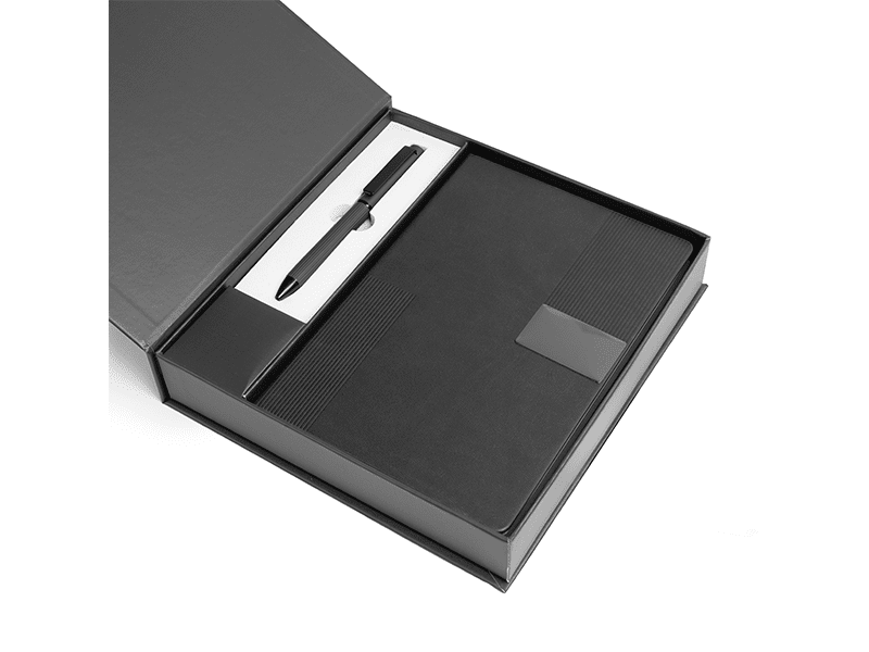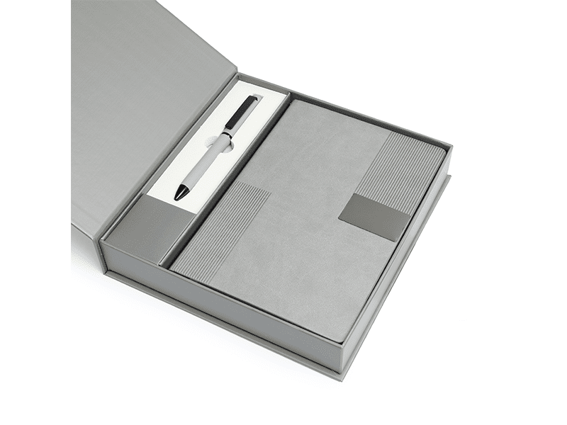 Presented in a magnetic closure box available in Black, Blue, or Grey, Prush is tailored for corporate events, executive gifting, and high-value giveaways. The notebook’s metal plate offers prime space for branding, reinforcing your company’s identity with every use.