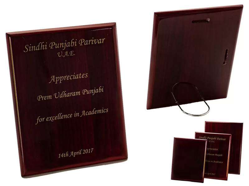 Lacquered wooden plaque suitable for direct engraving on the wood, or for putting metal plate.