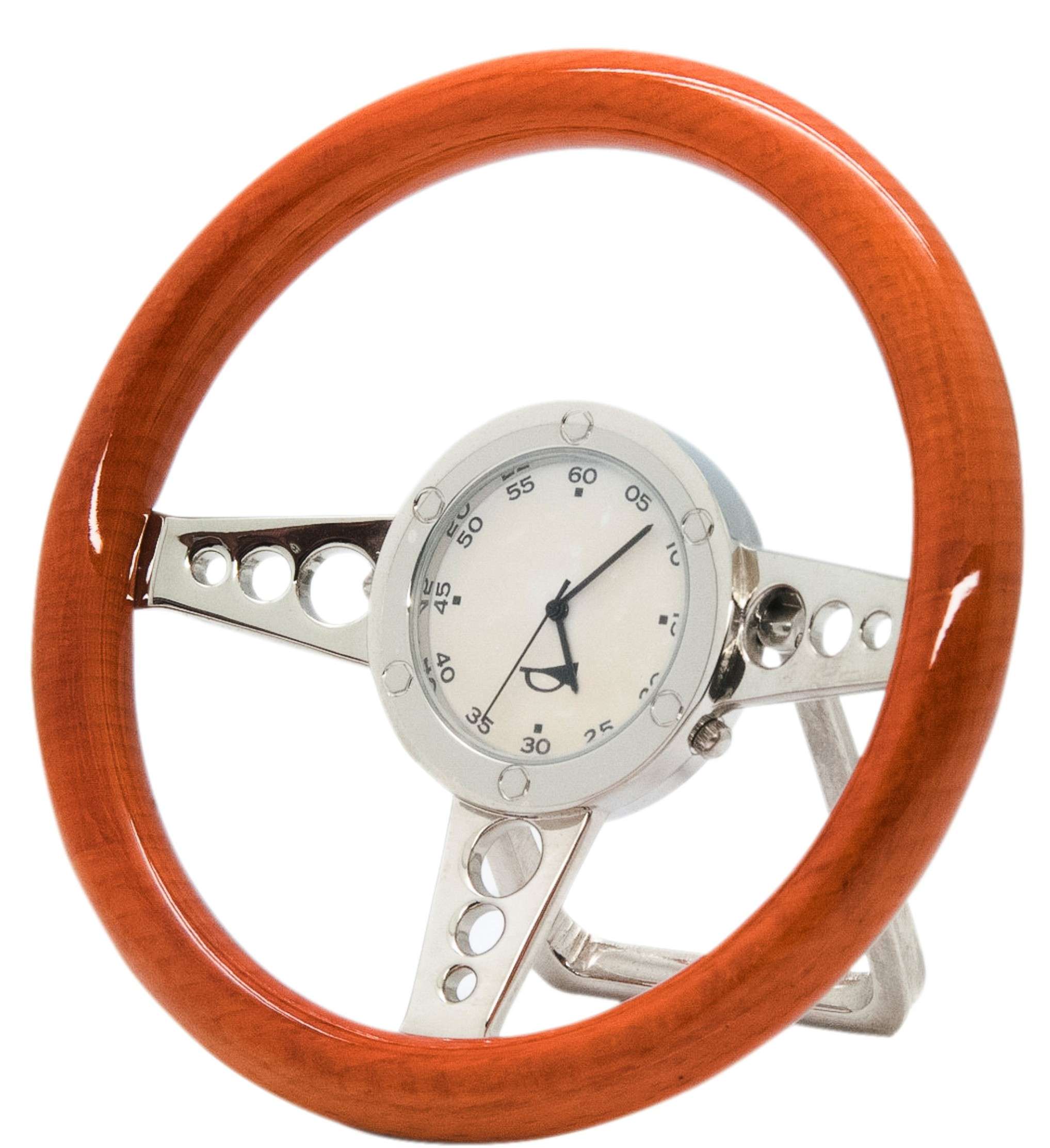 Wooden finish steering wheel shaped clock
