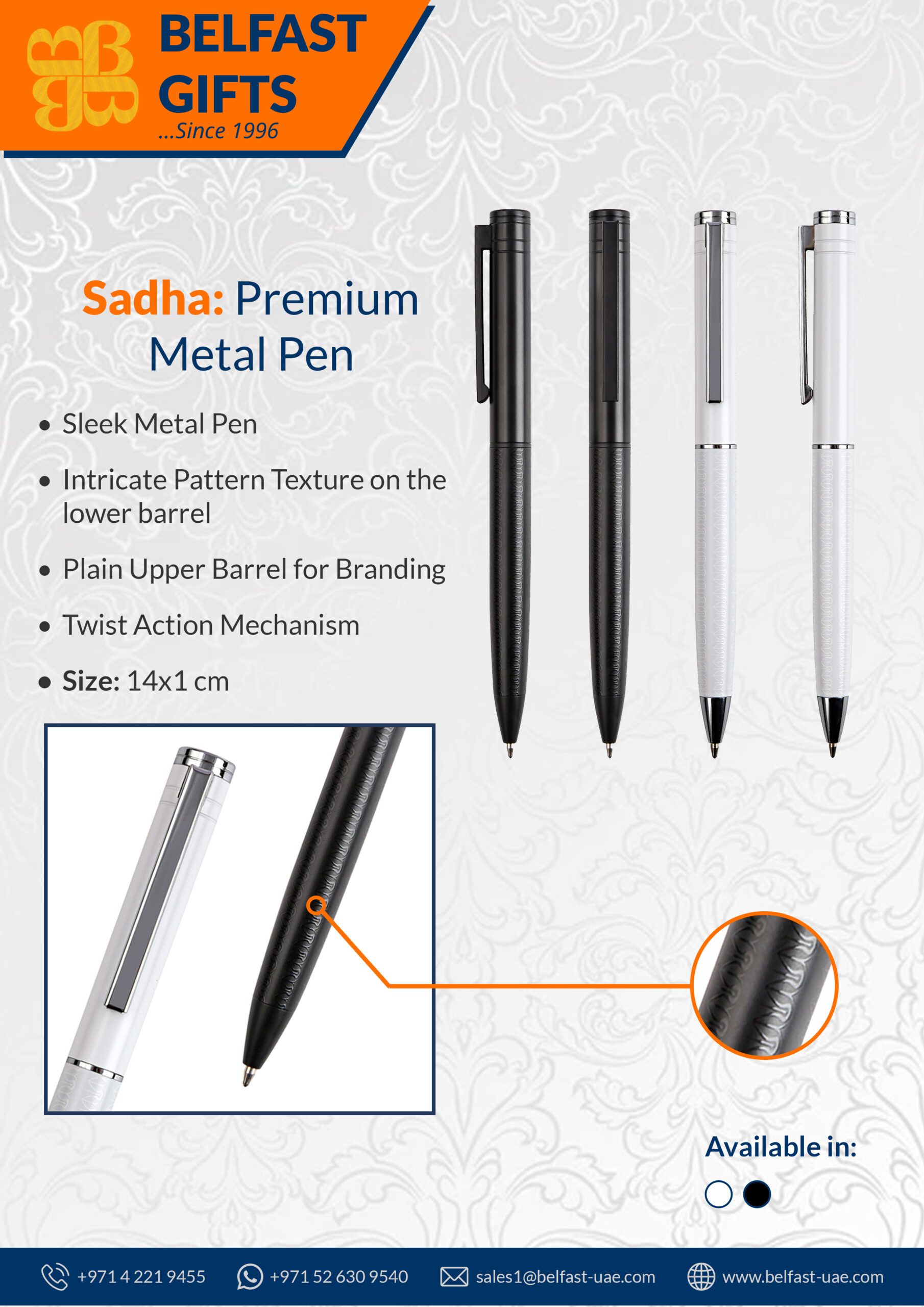Engineered with a twist-action mechanism and constructed from durable metal, Sadha ensures a smooth, consistent writing experience while reflecting a premium look and feel. It’s an excellent choice for executive gifting, branded merchandise, or high-end promotional campaigns.