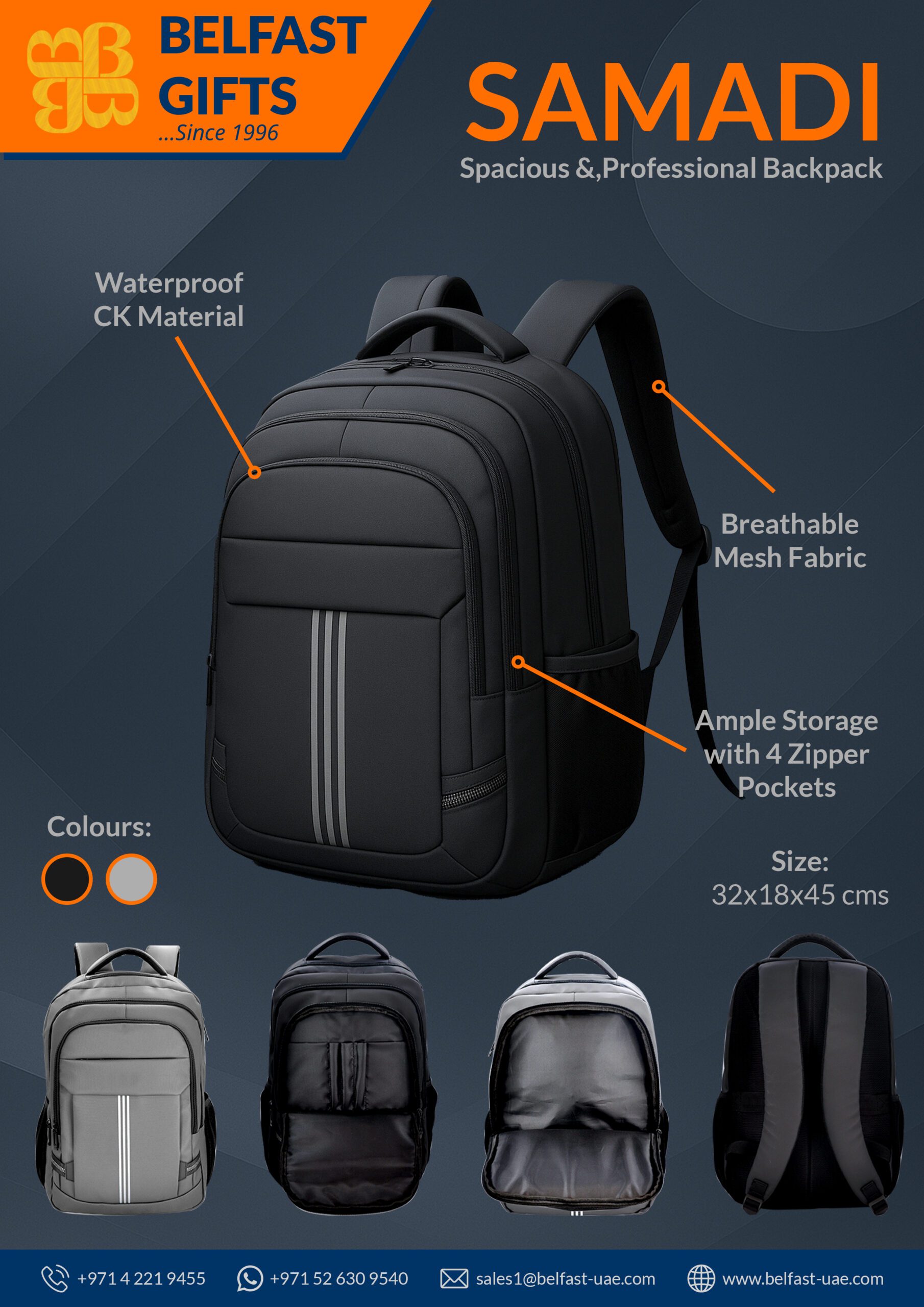 Designed for professionals on the move, Samadi combines style, comfort, and functionality in one sleek backpack. With its large capacity and smart compartments, it’s ideal for daily commutes and business travel.