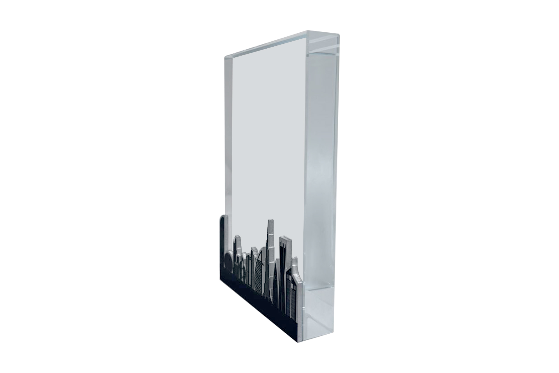Celebrate achievement with elegance using the Skyline Trophy. This premium glass award features a clear glass body complemented by a precisely crafted metal skyline plate of the United Arab Emirates. Its modern design captures both minimalism and prestige — perfect for corporate awards, milestone recognitions, or memorable gifts. The thick, solid glass construction ensures this trophy feels substantial and gives a lasting impression.