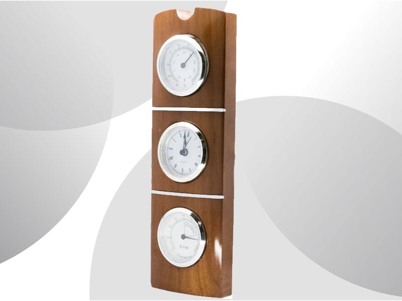 wooden clock, thermometer, hygrometer which can be converted to three clocks