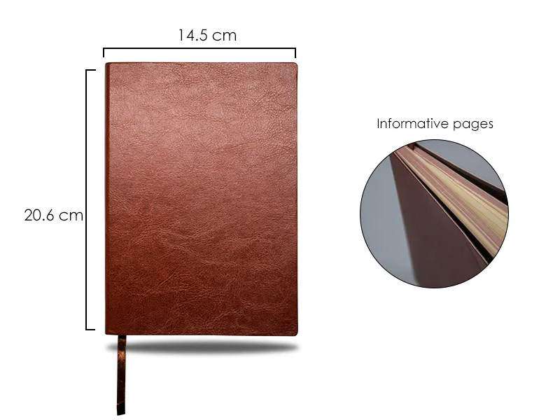 A5 tan colour glossy leatherette soft textured single lined notebook with brown colour sheet borders which make it an extremely unique notebook for corporate gifting or promotional giveaway to business clients, employees or even as event giveaways
