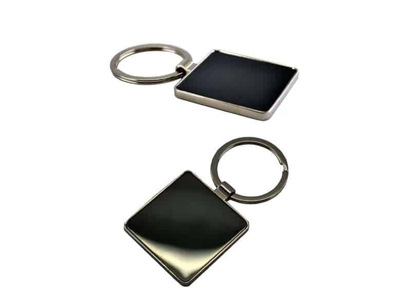 Double sided square keychain.