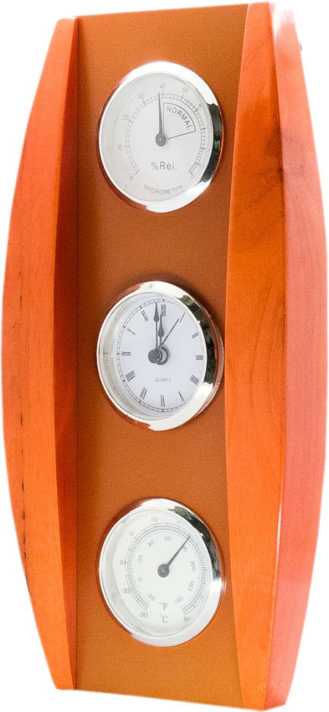 Wooden clock, thermometer, hygrometer which can be converted to three clocks
